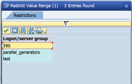 Server Group 을 possible entry 를 확인하면 T-code : RZ12 에서 설정한 Group 을