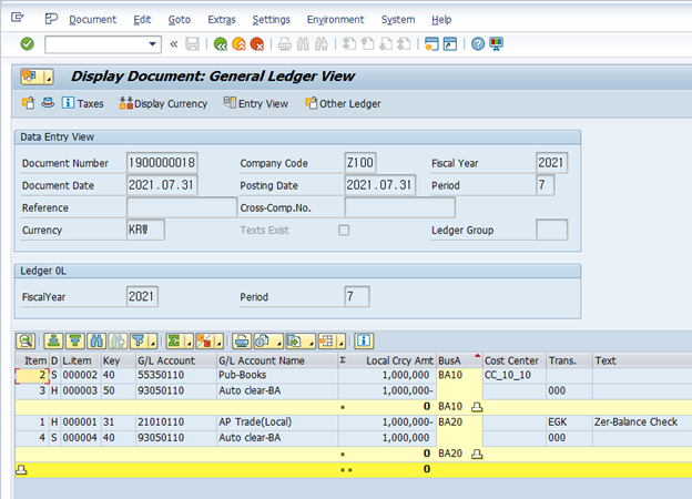 즉, 잔액이 어긋나는 부분을 Clearing-BA 계정으로 자동 입력되면서
