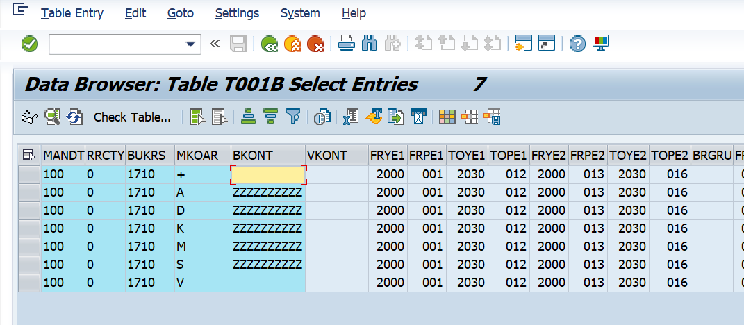 Table을 통해 확인하려면 'T001B'를 조회하면 된다.
