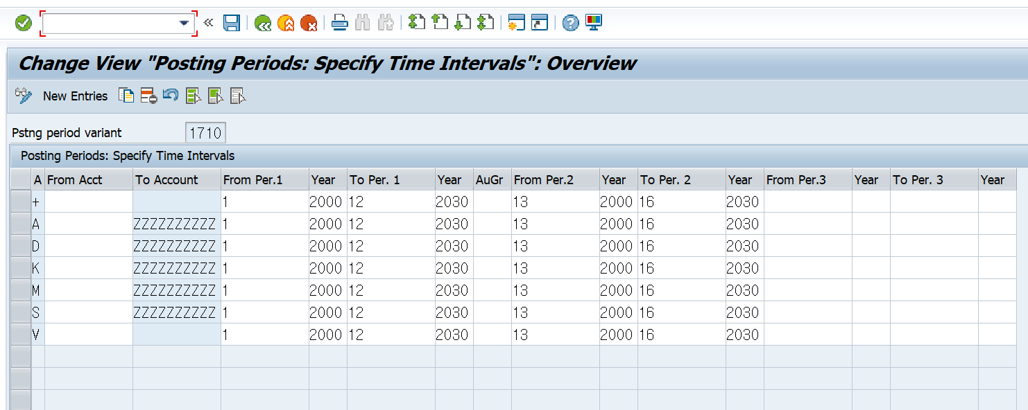 Posting Periods 관리하는 프로그램은 Account Group별로 Posting Period 기간은 1, 2, 3 로 나누어서 관리를 할 수 있다.