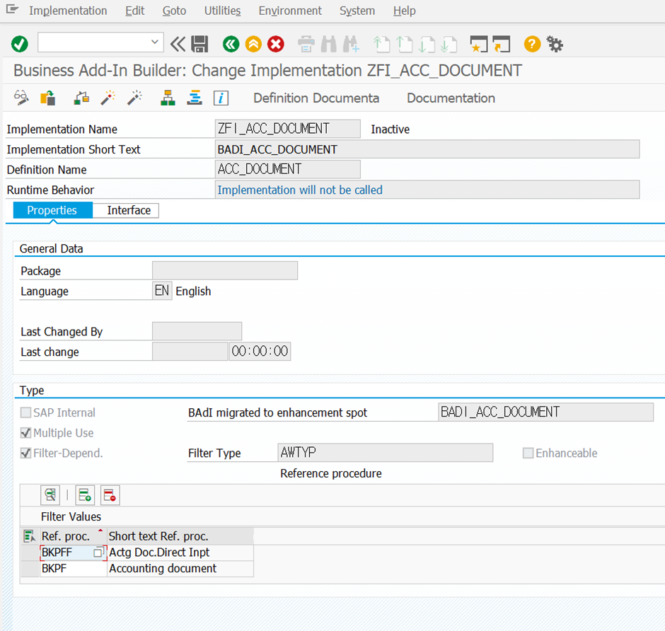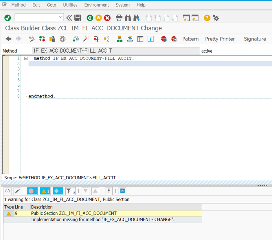 이제 BAdi ACC_DOCUMENT 를 사용할 준비가 다 끝났다.
