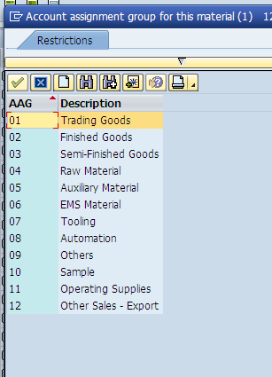 AAG (Account assignment group for material) 는 Material Master 에서 분류하는 그룹입니다.
